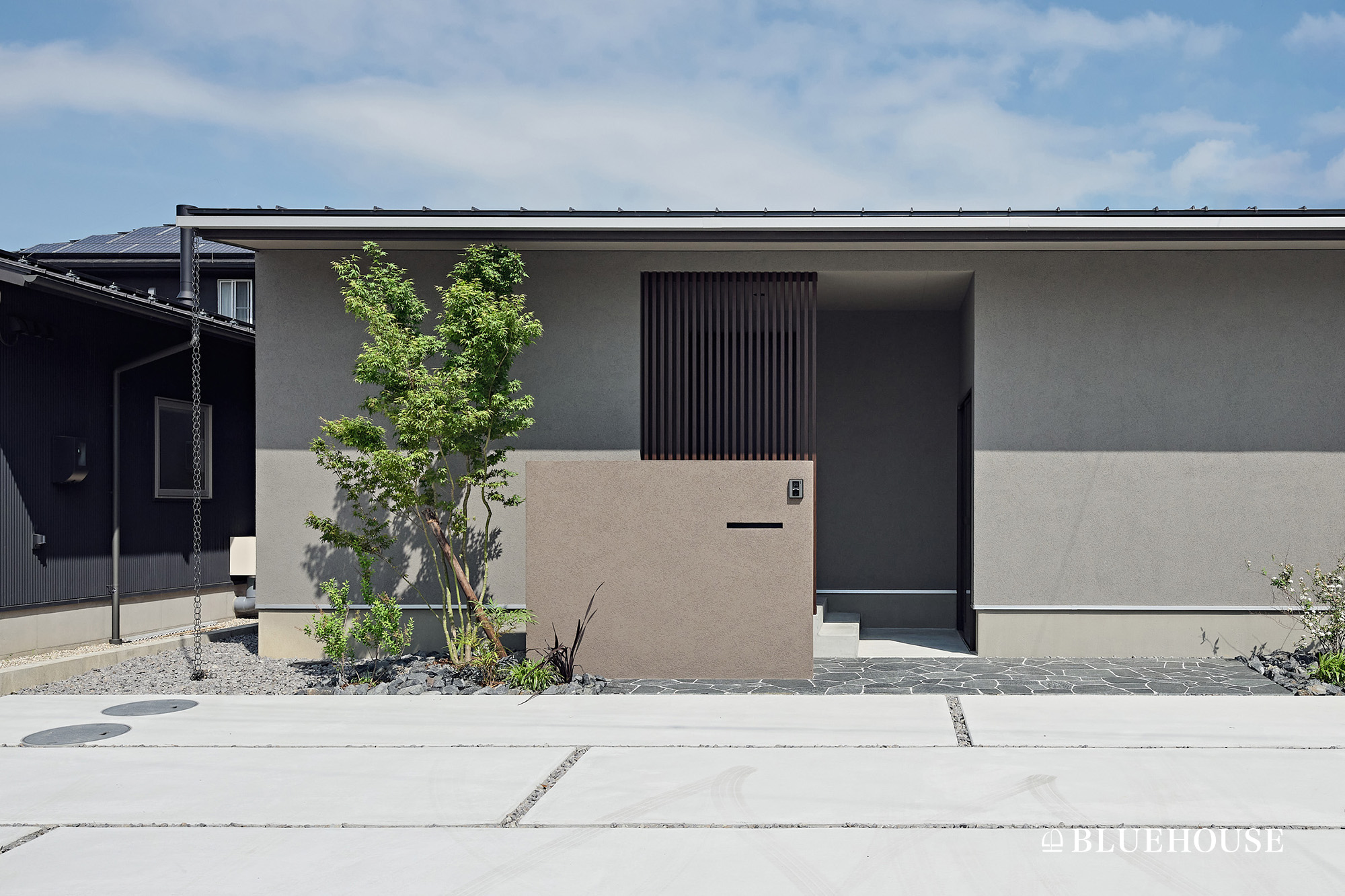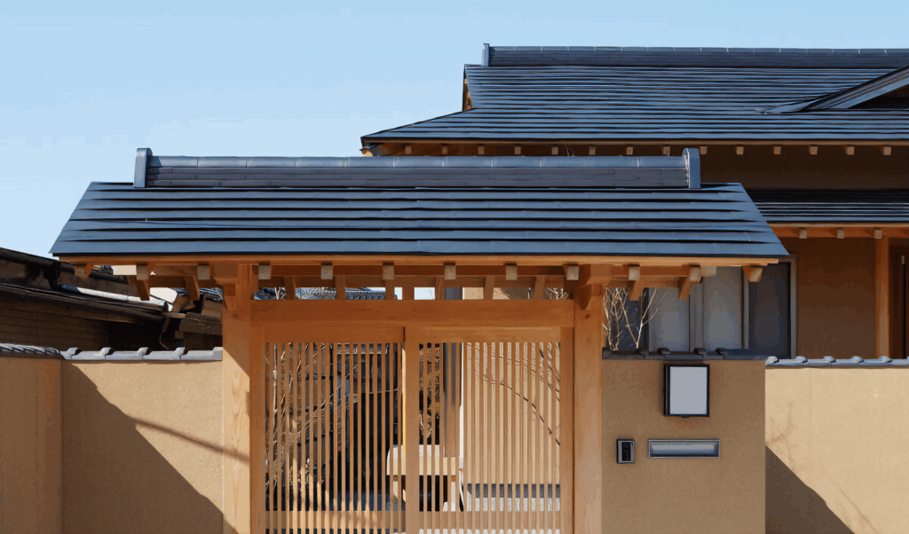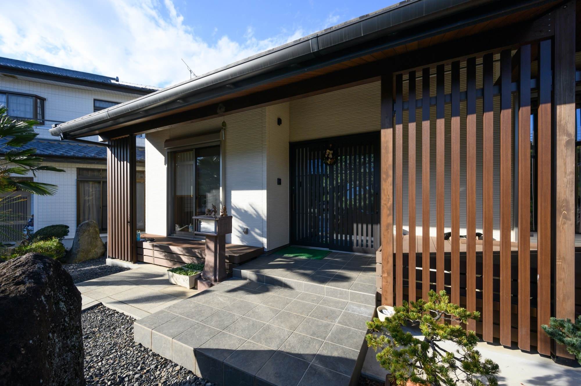 和風モダンの平屋と目隠しを兼ねた開放感のある門塀の外構施工例 川越市- 川越の外構・エクステリアは全国トップレベルの受賞歴を誇るアークふくしまへ。