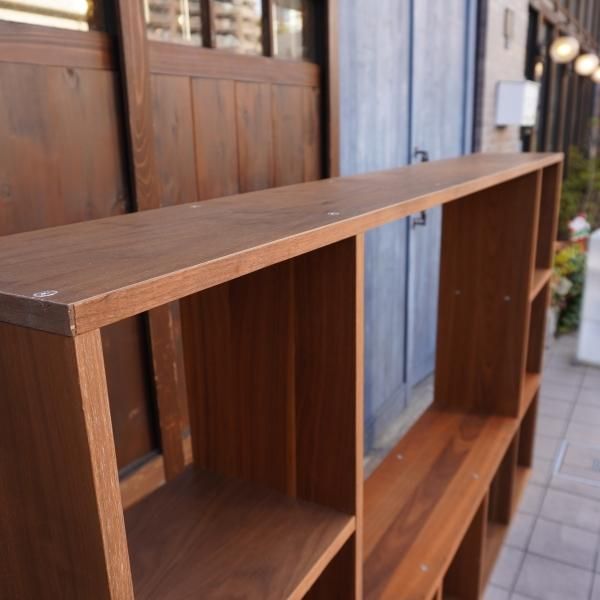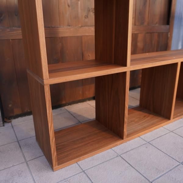 人気の無印良品 MUJI のウォールナット材 3×5オープン型スタッキングシェルフ!!スッキリしたデザインの万能棚。テレビボードや本棚など用途はざまざま♪店舗什器などにもおススメ! カゴ付き -kokoelma -ココエルマ- 雑貨・中古家具・北欧家具・アンティーク家具の。