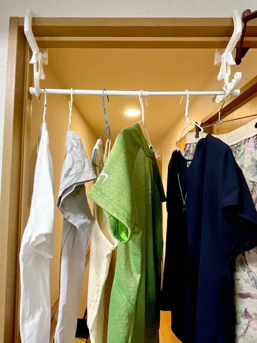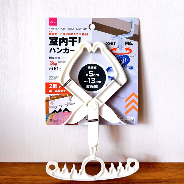 部屋干しに最適!ダイソー「スパイラルハンガー×鴨居フック」。
