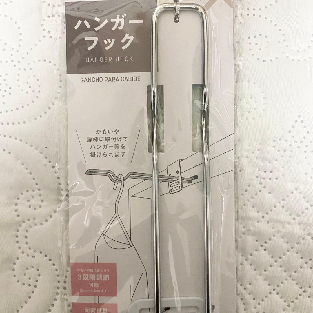 ♡ ダイソー ハンガーフック 鴨居や窓枠や扉枠に取り付けるタイプのフックです 鴨居の幅に合わせて3段階調節可能2㎝~4.5㎝まで耐荷重量:3kg ちょこっと部屋干ししたいときや 洋服を掛けておきたいときにとても便利👍 短めの物干し竿を両方に渡して 干すこともでき。