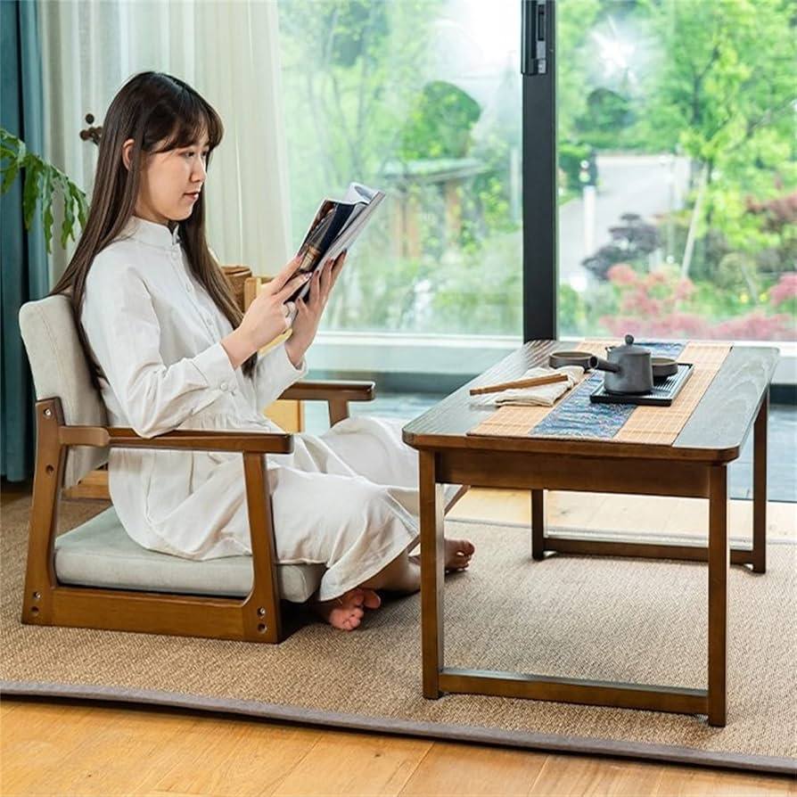 AmazonPugrwei 和座椅子 座椅子 木製 クッション付き お座敷 和室用 畳椅子 椅子 背もたれ チェア コンパクト 仏間 畳 タタミ応接間 和風 おしゃれ 和室 畳部屋 座敷 旅館 和カフェ 完成品BPugrwei座椅子。