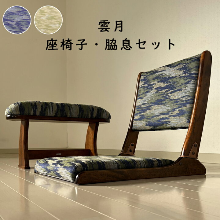座椅子 脇息 セット 2点セット 和座椅子 折りたたみ 肘置き 肘掛け 和風 コンパクト 折りたたみ 和室 畳の部屋 旅館 座敷 こたつ用 お寺 囲碁将棋 法事 来客 1人掛け 敬老の日 フロアチェア チェア 椅子 シンプル おしゃれ座椅子 脇息 雲月 ブルー ゴールド家具のアイテム。