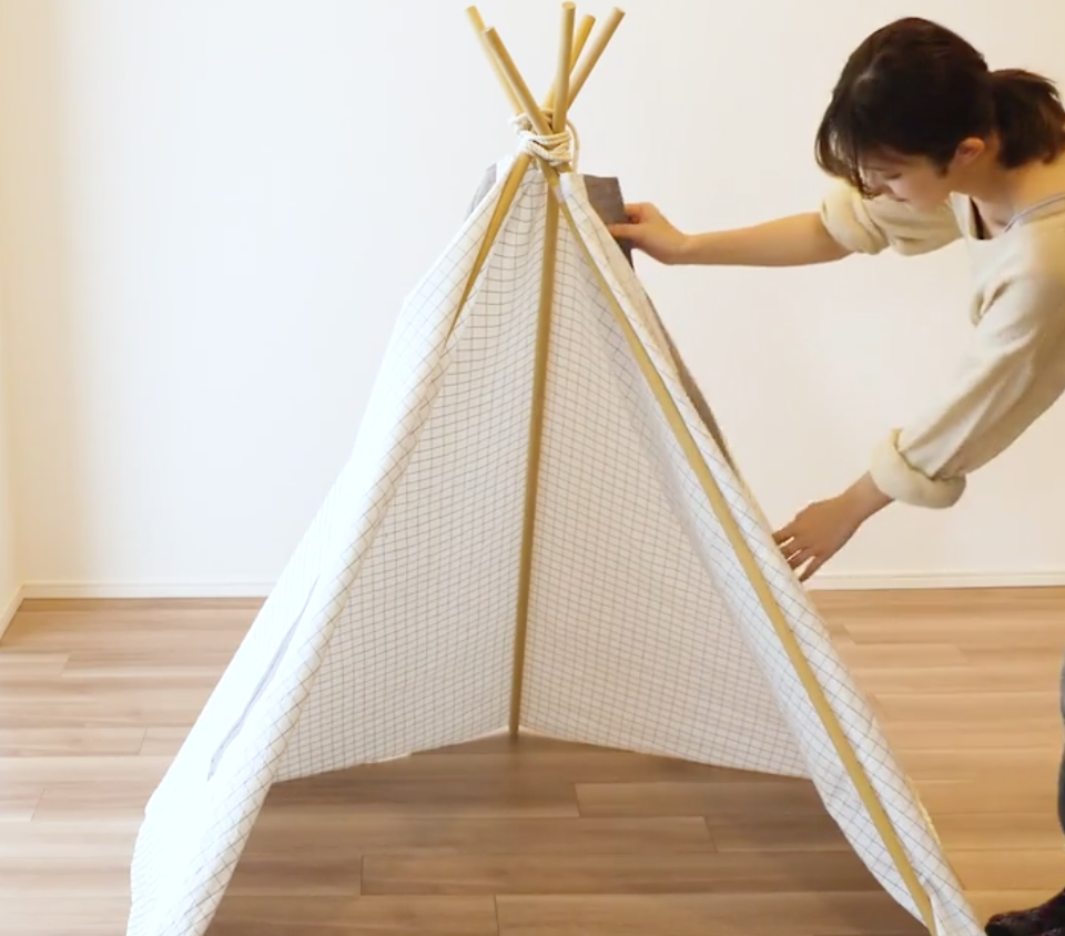 作り方 ティピーテント♪子どもの秘密基地をつっぱり棒で作る。