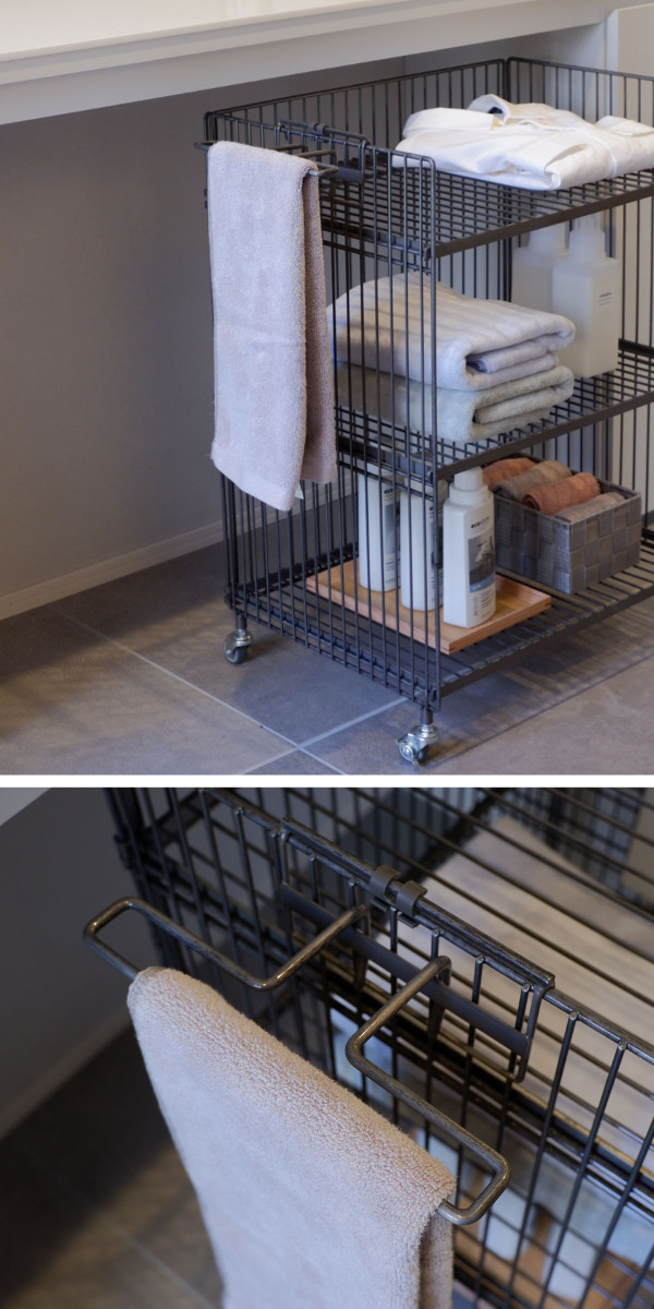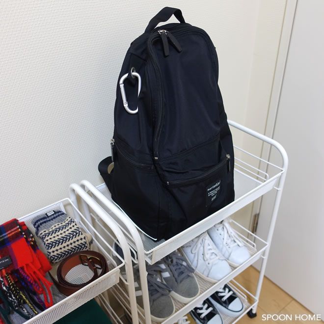 山善のワゴンにニトリのバッグハンガーを取り付け!ランドセルも大きなリュックもスッキリ 収納アイデアUCHIの平屋。