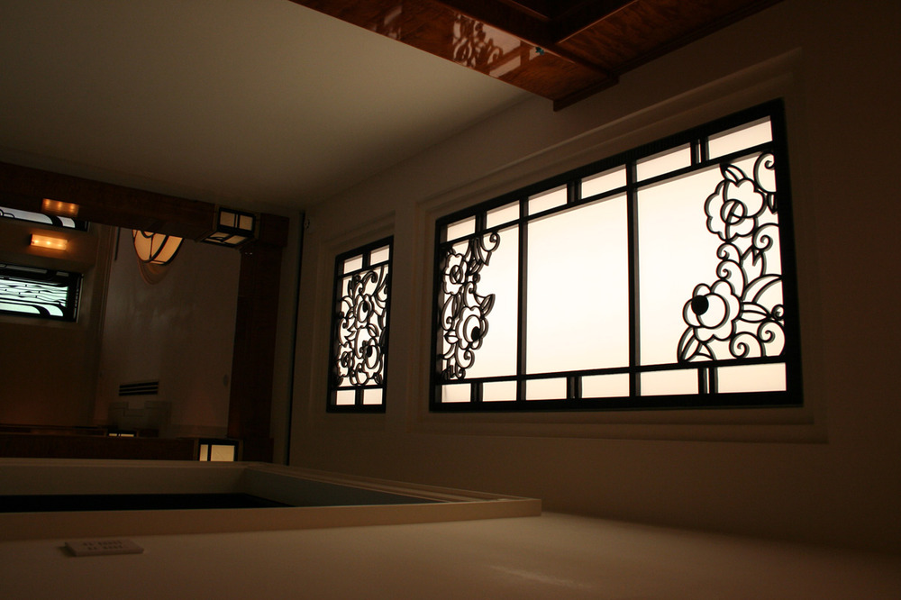 ロートアイアンによる窓の飾りグリル ・ 内装インテリア・ ハウスデザインスタイル ・製品・施工例・ロートアイアン・メーカー 「よし与工房」。
