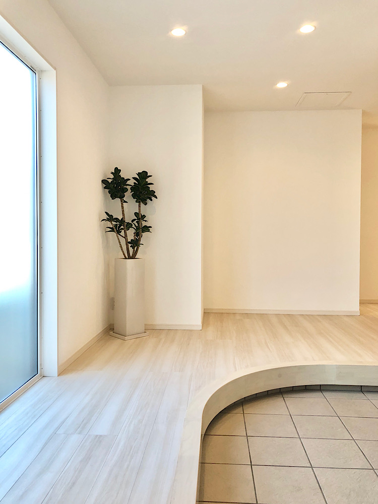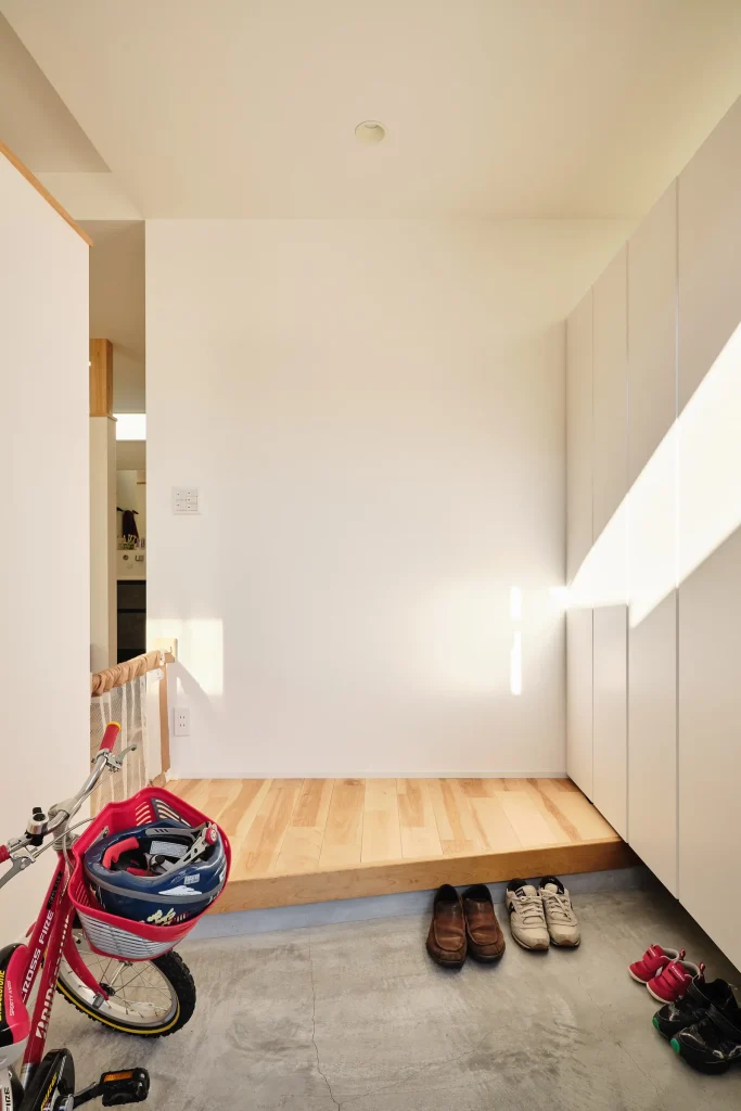 玄関は家の顔。 広いエントランス空間は、ゆとりのある開放的な印象になるだけでなく、多様な使い方ができます。趣味の自転車を置くもよし、観葉植物で彩るもよし、ここでDIYもできちゃいます。 ライフスタイルに併せて使い方をアップデートしていく。 空間のゆとりが。