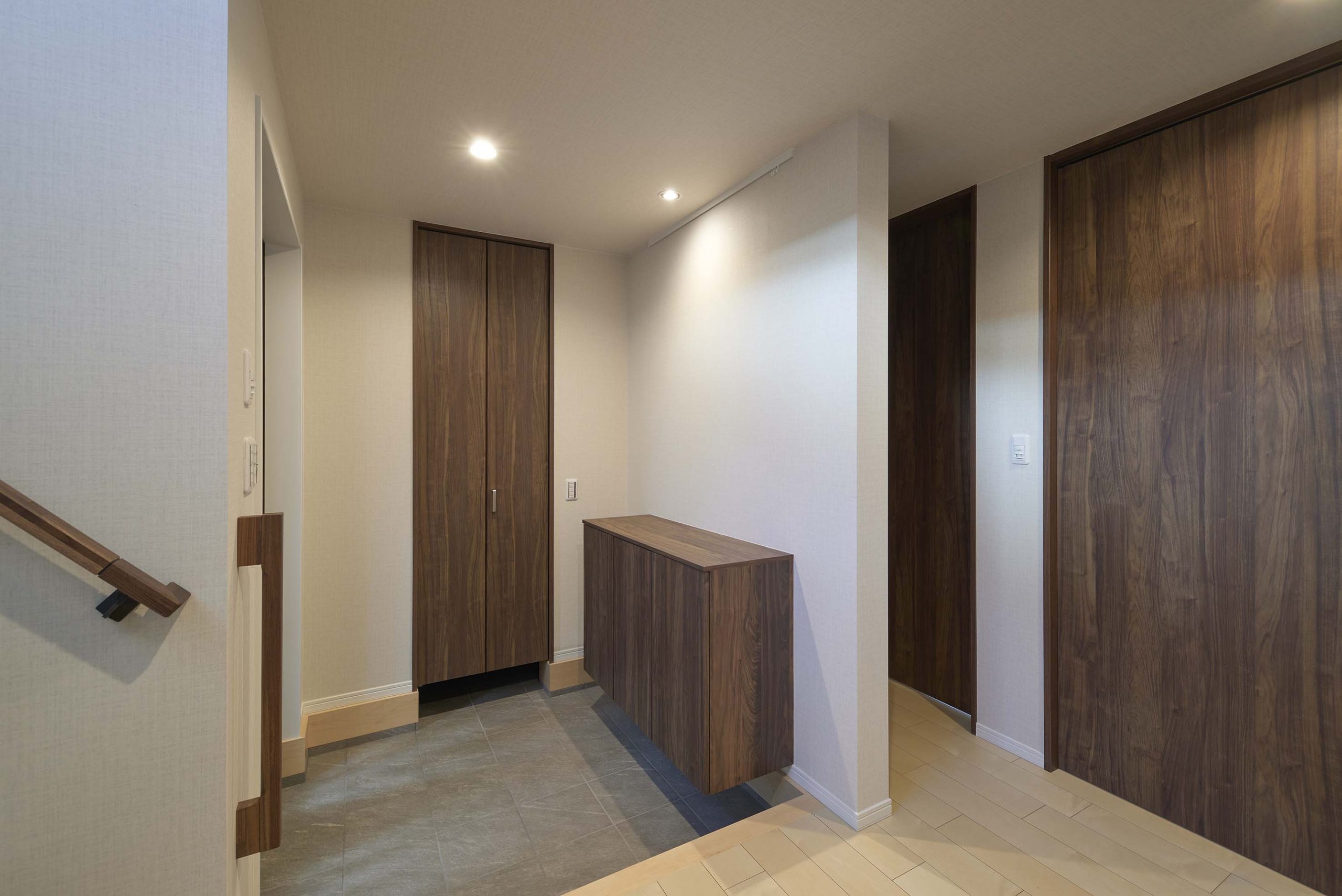 シックで上品な大人カラーの外観、想いが叶った明るく広い玄関ができました細田建築愛知県一宮市の工務店。注文住宅一戸建てを一宮市、稲沢市、その近郊に建築しています。