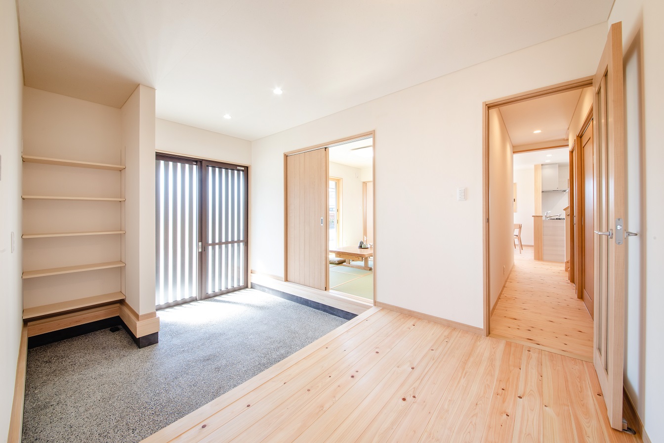木津川市 完成しました-1階編 広い玄関土間のある家 株式会社前田工業所。