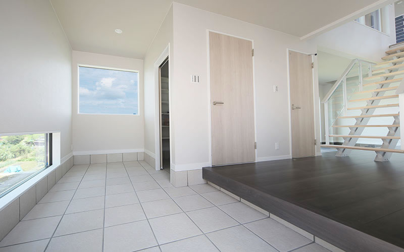 広い土間玄関、白い「アート」な家でスタイリッシュに暮らす施工例注文住宅・リフォーム・土地販売榎本建設株式会社。