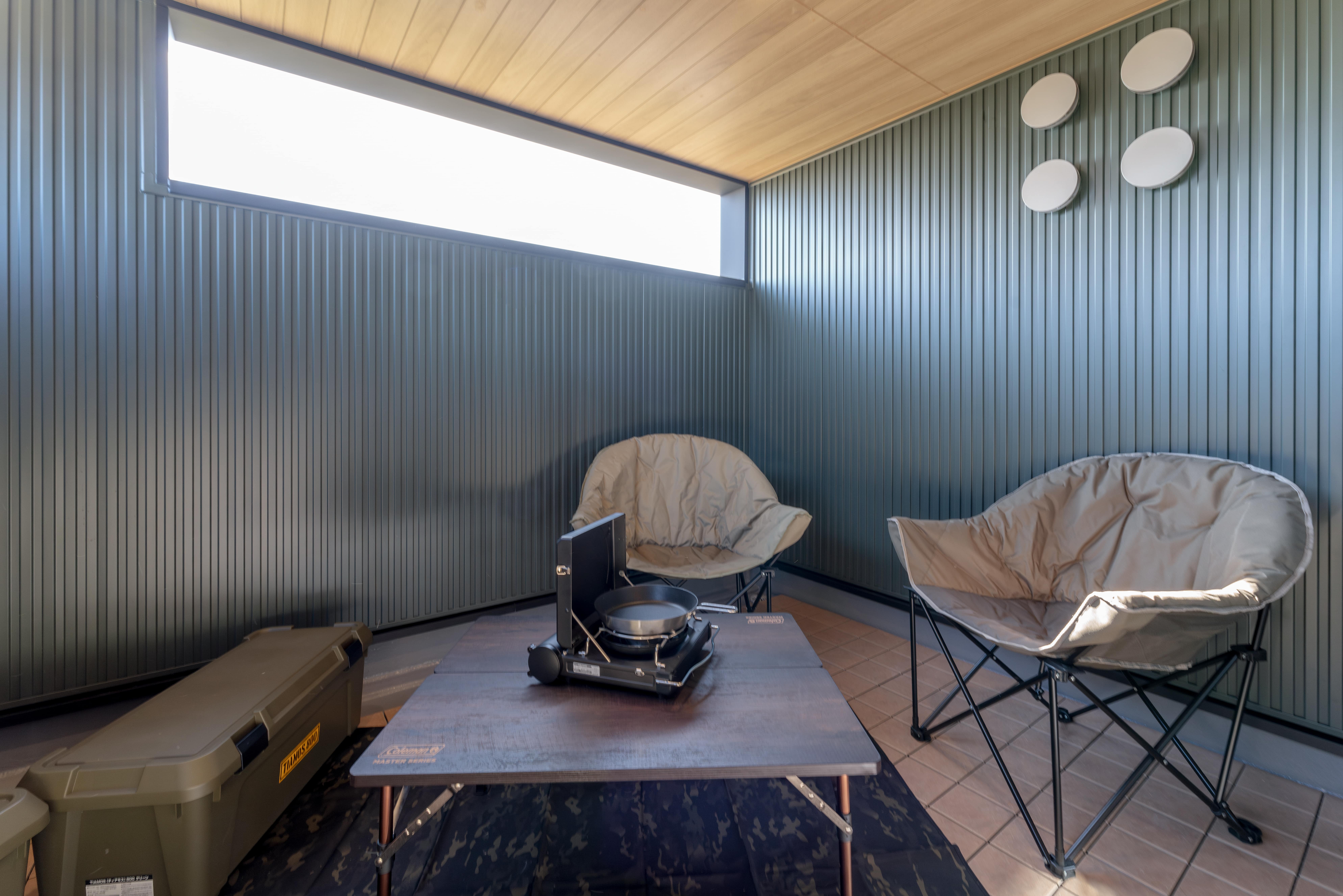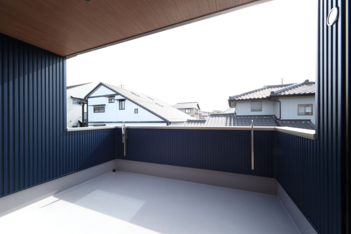周囲からの視線を気にせずゆったりと過ごせるプライベート空間の中庭のような雨の日の安心なインナーバルコニー - 事例写真「Navy×Woodstyle」注文住宅のハウスネットギャラリ。