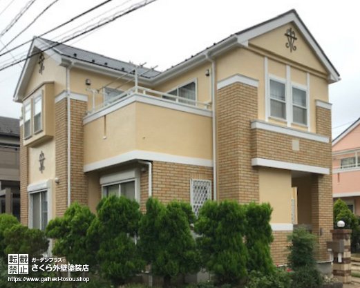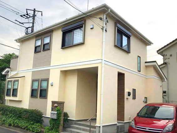 経年による汚れが目立ちにくいクリーム色の外壁塗装さくら外壁塗装店 外壁塗装リフォーム工事専門店。
