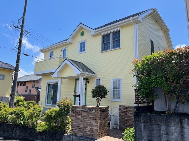 色あせたベージュの外壁をワントーン明るいクリーム色に 神奈川県逗子市 簡単ネット注文の外壁塗装ならいえふく。