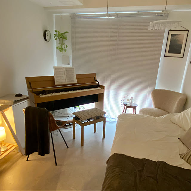 部屋全体 一人暮らし ホワイトインテリア 狭い部屋 電子ピアノ などのインテリア実例 - 2017-11-23 14:13:23RoomClip ルームクリップ。