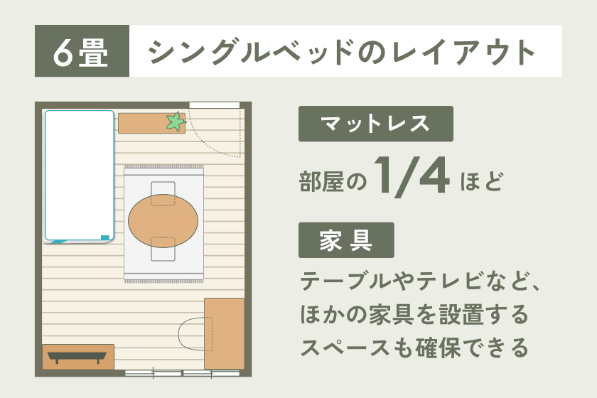 6畳のお部屋にシングルサイズのベッドを配置するときに注意したいことルーム&インテリア大百科・流行のライフスタイルBedpediaインテリアガイド。
