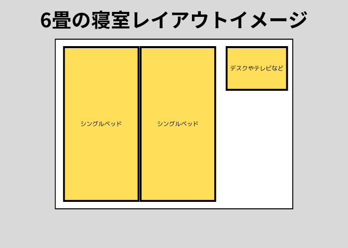 6畳にはシングルベッド2台のツインかダブルベッドか。