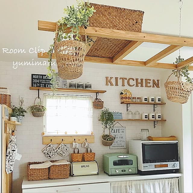 キッチン NO GREEN NO LIFE アラジントースター アイアン棚 フェイクグリーン などのインテリア実例 - 2017-06-2511:32:37RoomClip ルームクリップ。