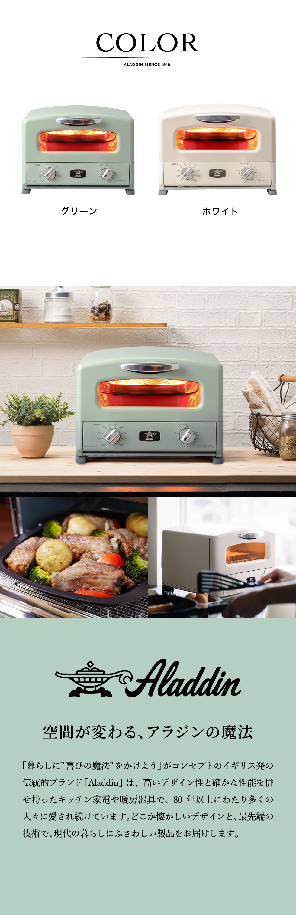アラジン トースター 4枚焼き グリル 北欧 AGT-G13A ホワイト グリーン 白の通販Monchy Monchy。