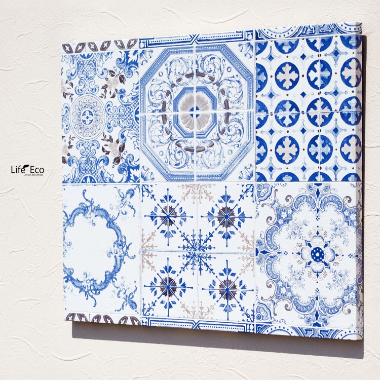 アートパネル アートボード、インテリアパネル アズレーション ブルー&ホワイト 青・白 MサイズW45cm。