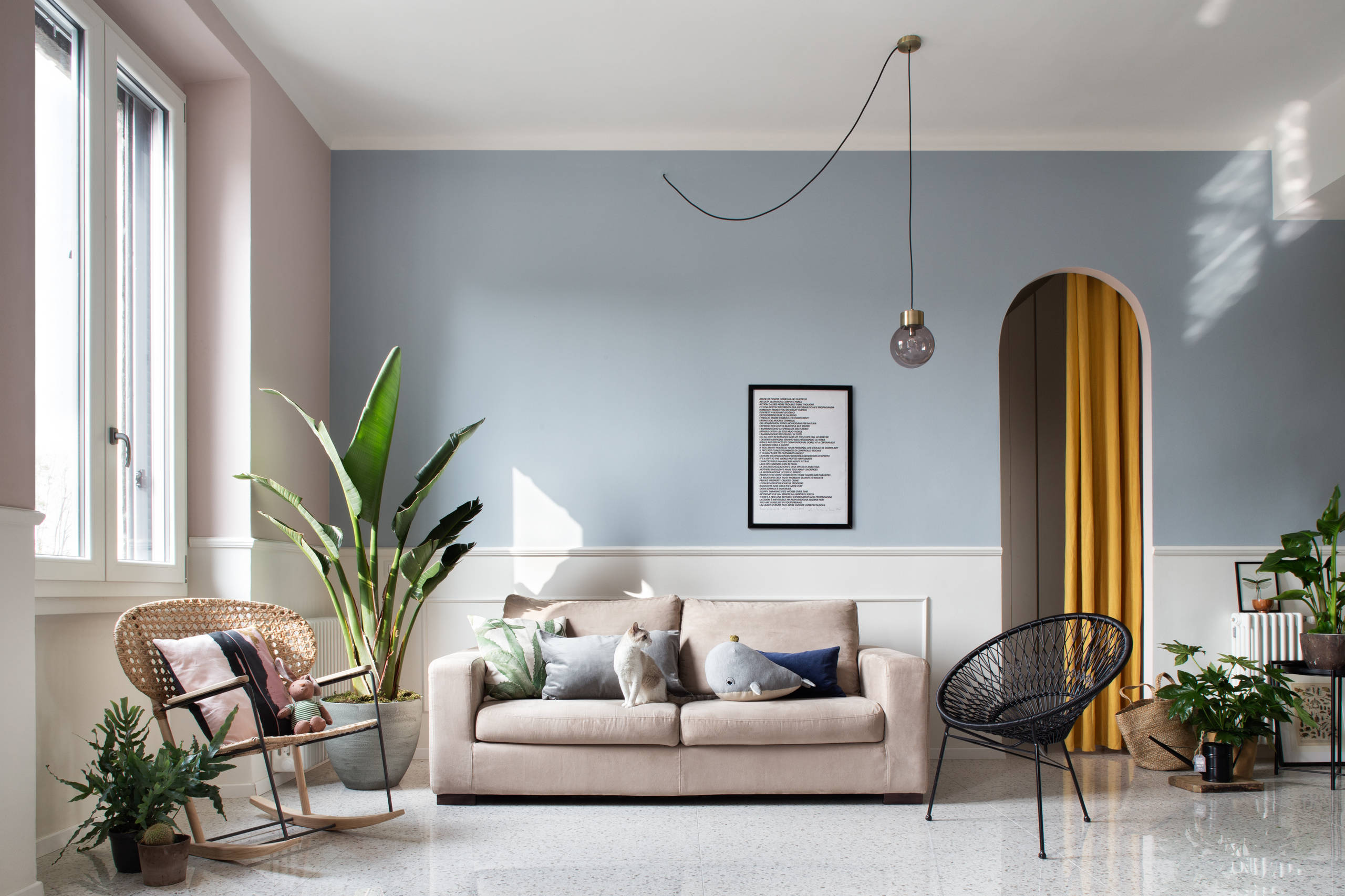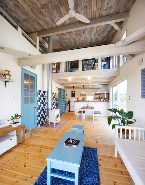おしゃれなリビング白い床、青い壁のインテリア画像 75選 - 2025 年 10月Houzzハウズ。