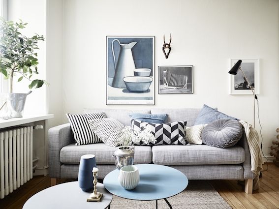 clip グレーx青x白 リビング 飾る絵の色からコーディネートを考えるHOME DISPLAY。