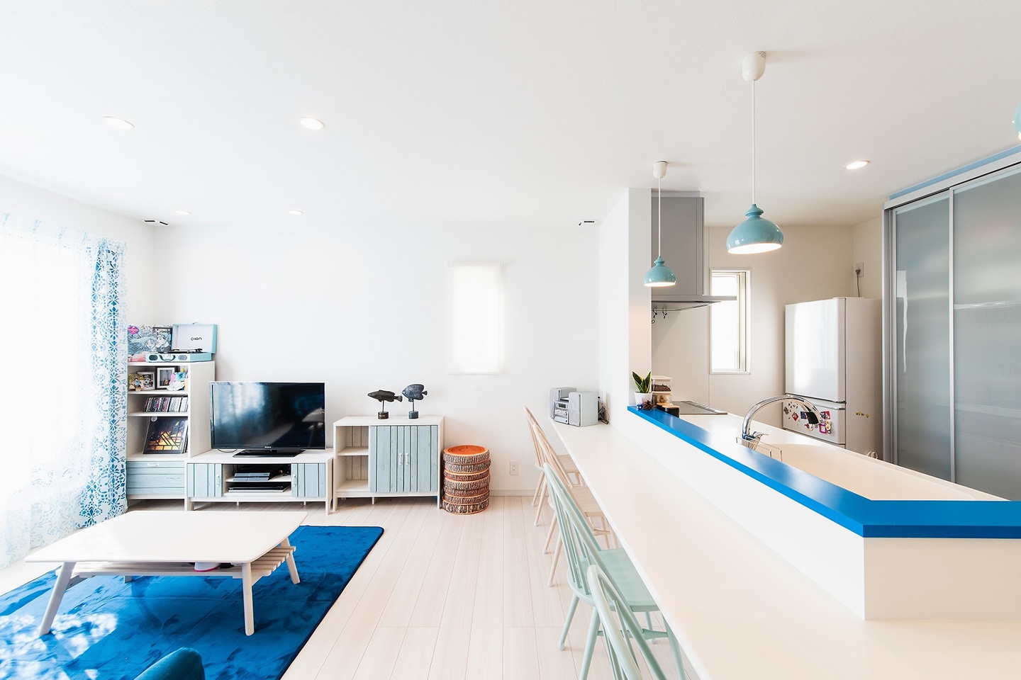 SUUMO外観・インテリアのデザインのかわいらしさが魅力。白×ブルーでまとめた、さわやかな快適空間を実現 - コグマホーム 八王子店の建築実例詳細注文住宅。