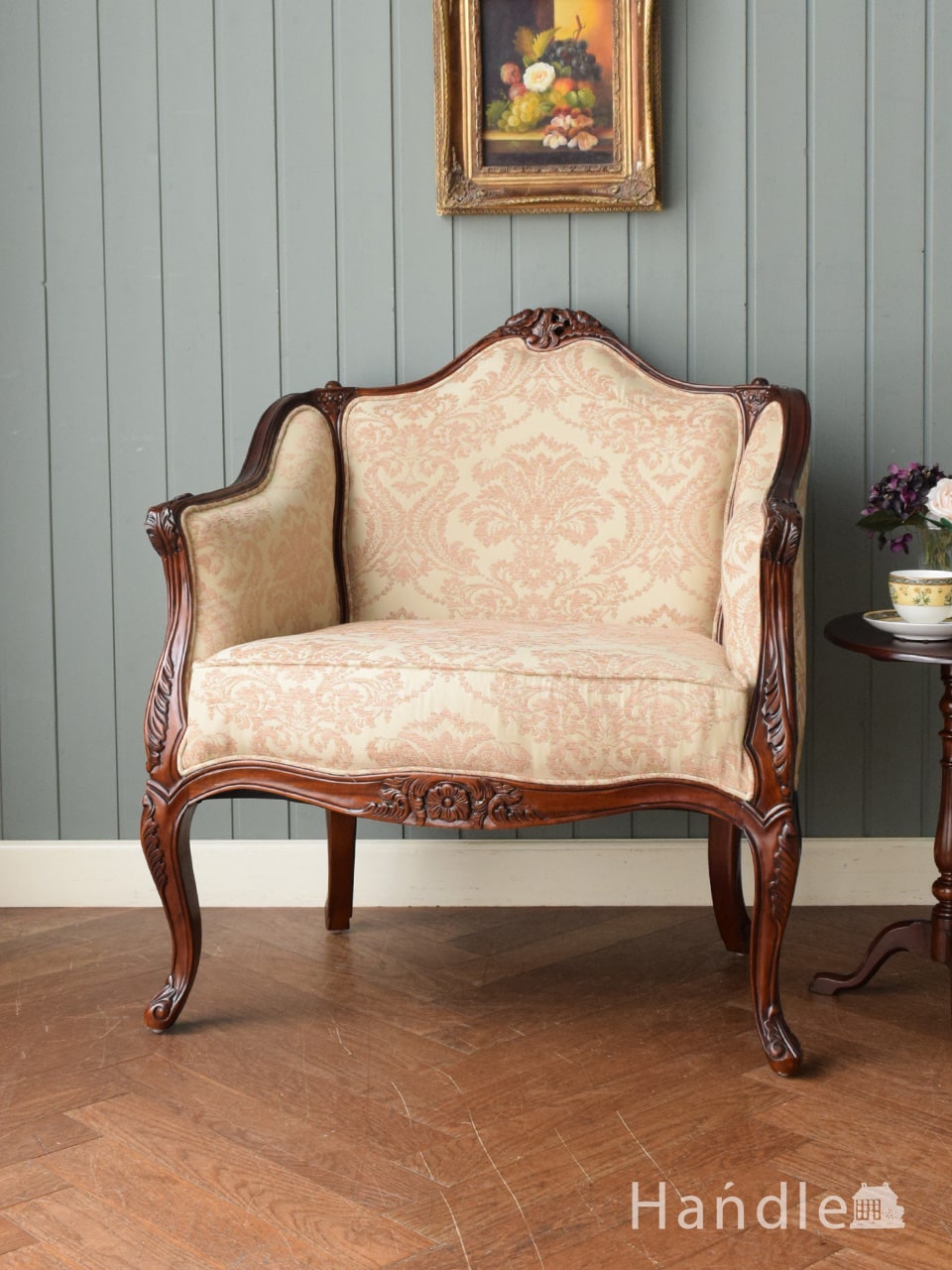美しい猫足が魅力のパーソナルソファ、アンティーク調の一人掛けラウンジチェア y-588-c アンティーク風。