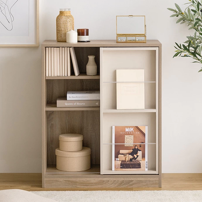 スライド扉本棚 推し活収納幅90.5グッズ収納 漫画収納 Kikkaおしゃれな家具・インテリア通販ならクオリアル公式ショップ。