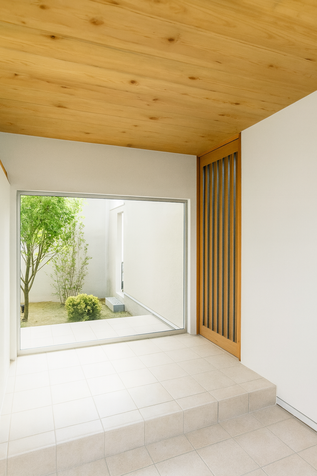 スッキリとした シンプル な 玄関 。正面に 窓 を設けることで、 開放的 で 広々 とした印象に。家づくり注文住宅新築マイホームライフスタイル心地よい暮らし遊び心のある家WHALEHOUSEホウェールハウス神戸建築homehousemyhomelifestyle。