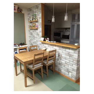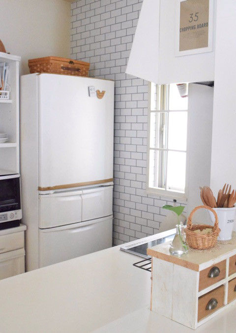 DIY キッチン カウンター下にシャビーシックな白レンガ壁紙☆ - キッチン - 他の地域 - DECO-ALL OKAYAMA デコール岡山Houzzハウズ。