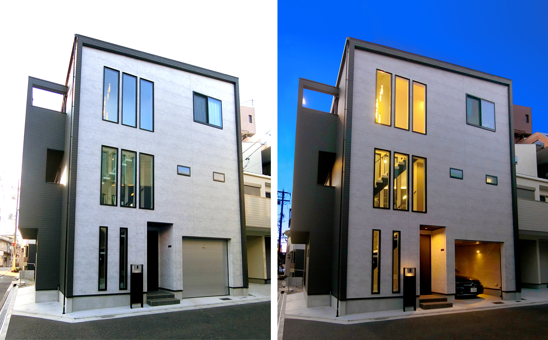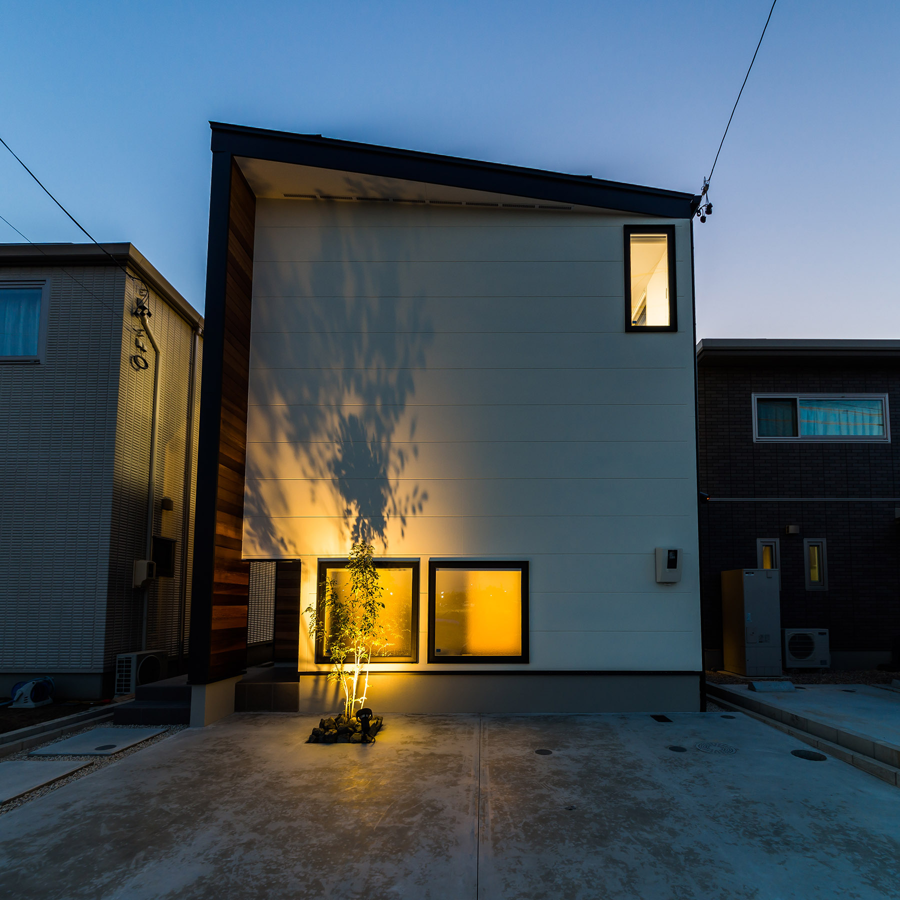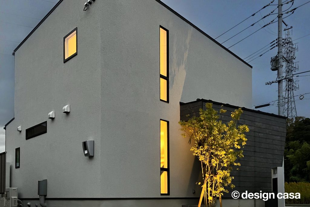窓の少ない家のおしゃれな外観&間取り事例名古屋の建築家×工務店 - R+house。
