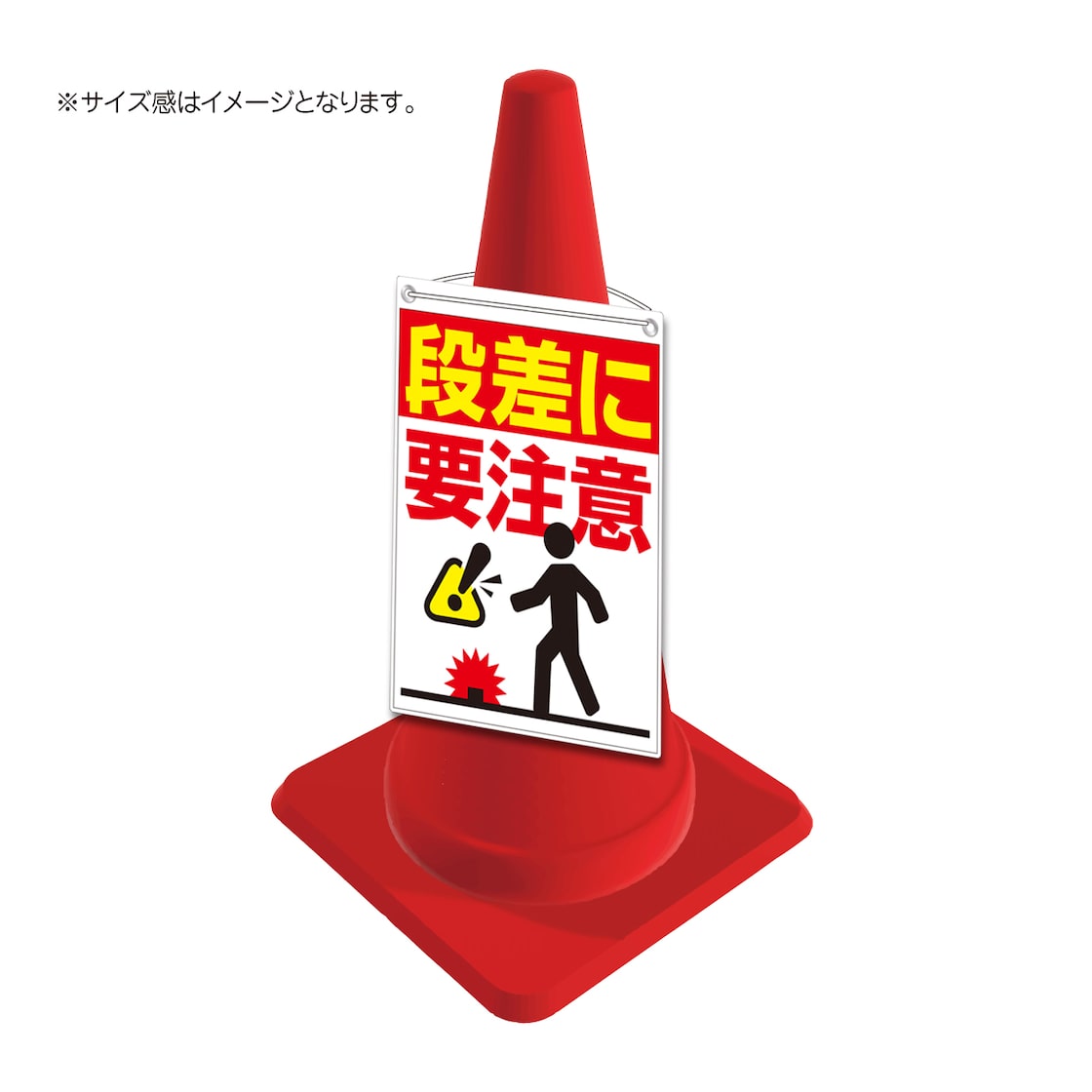 コーンサイン 段差あり注意385-793- 安全用品・工事看板通販のサインモール。