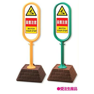 樹脂スタンド看板 サインポスト 「 段差注意 」 立て看板 駐車場 スタンド看板 注水式 標識 レンガ風ウエイト 屋外対応公式看板ショップ。