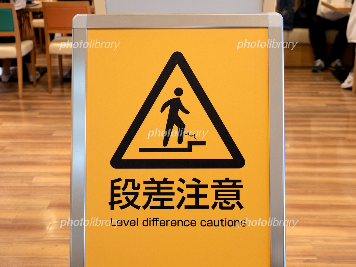 フードコートの段差注意の看板 写真素材7318462- フォトライブラリ。