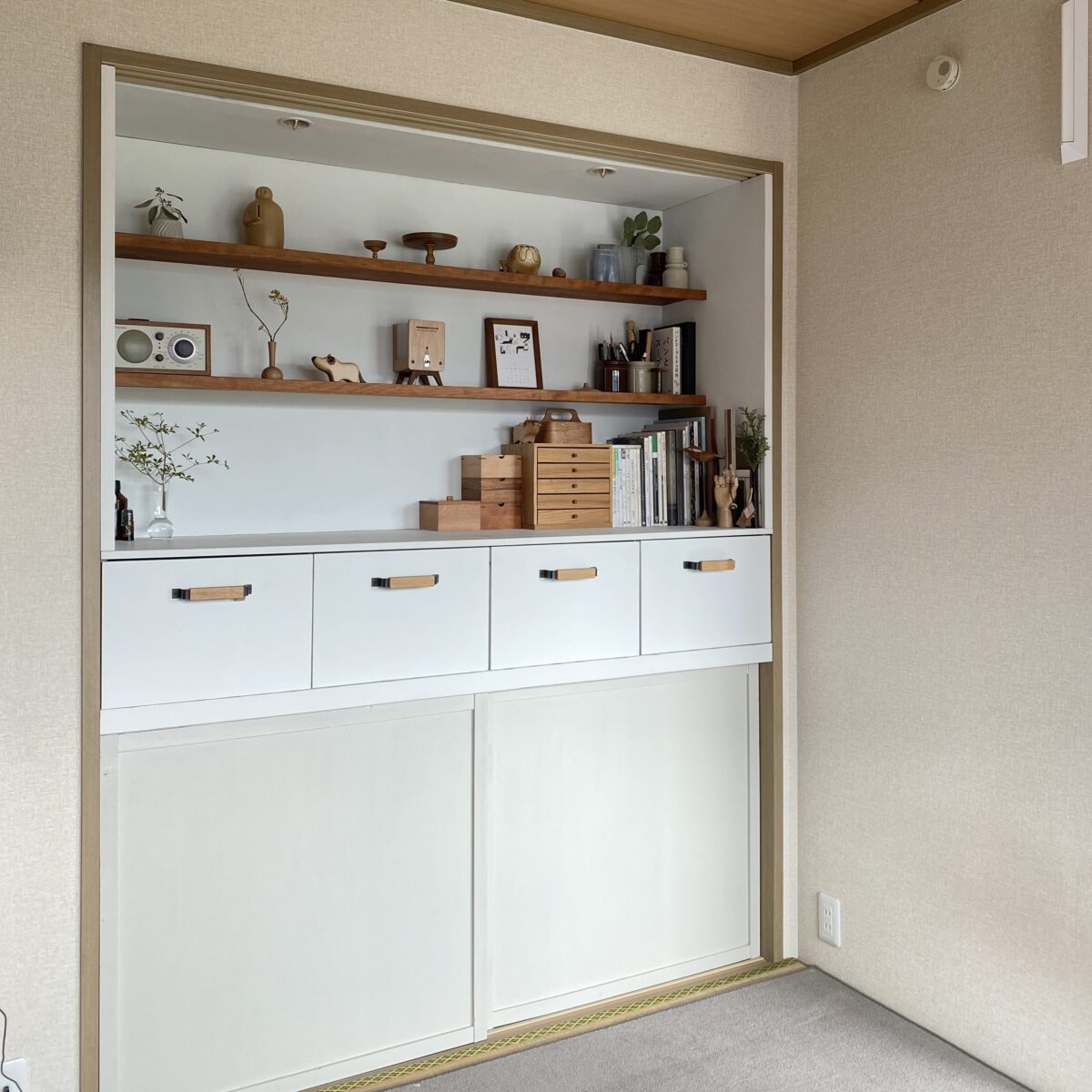暮らしのインテリア 6畳の和室を自由に寛げるリビングに。押入れ収納のビフォーアフターも公開!〜20年間住む賃貸アパートを慈しむ暮らし cafe202_homeさんムクリ mukuri。