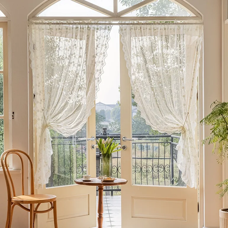 小窓用 カフェカーテン レース 半遮光 北欧 おしゃれ かわいい 模様替え 新生活 かーてん のれん レース ショート丈 キッチン トイレ 小窓 階段ドアカーテン ロング丈 暖簾 目隠し ナチュラル 部屋仕切り ヨーロッパ holosbird-goods1。