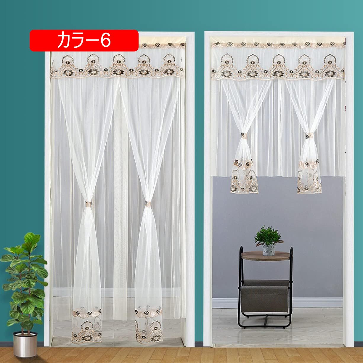 Amazon KMBIGNK階段 カーテン レースカーテン のれん 刺繍 カラー1 ドアカーテン 目隠し 間仕切り 丈 突っ張り棒 暖簾 北欧マジックテープ 簡単取り付け 姫系 レース花 プリンセス風 穴不要 100*190cm 二重デザイン おしゃれ 寝部屋 窓カーテンのれん。