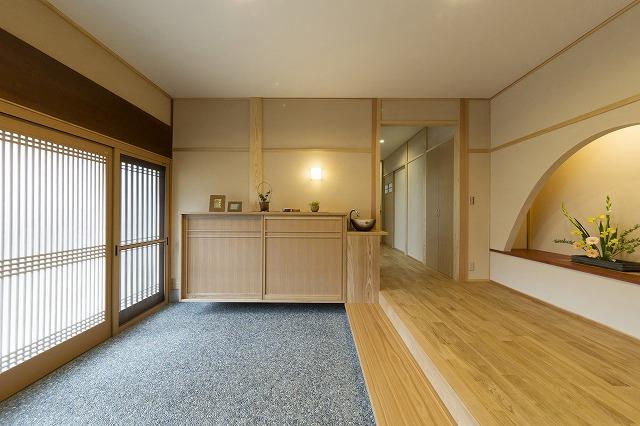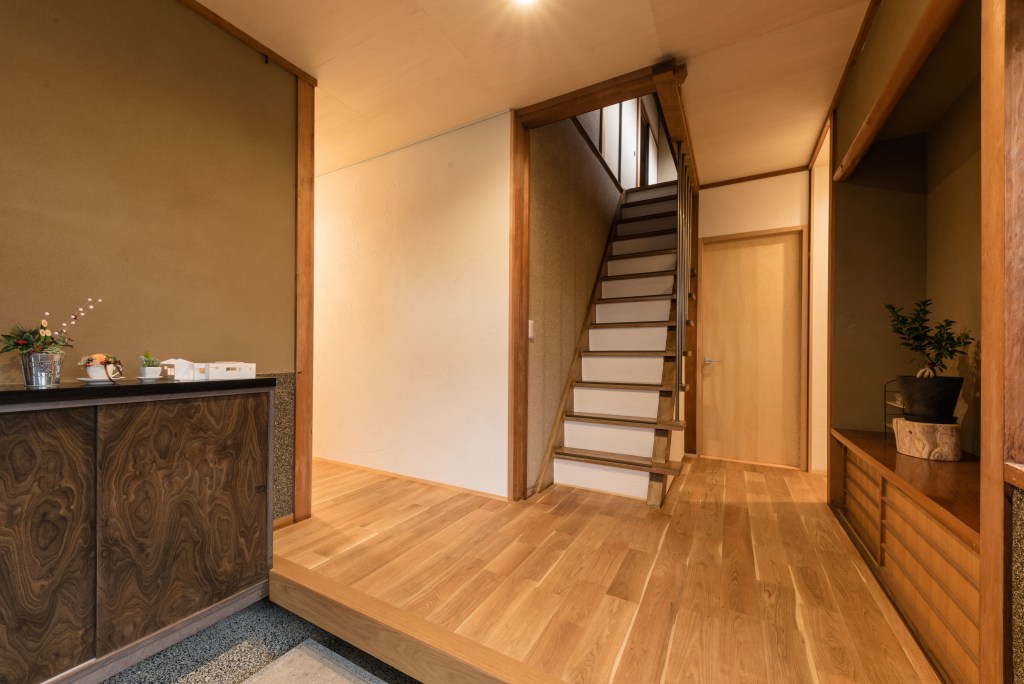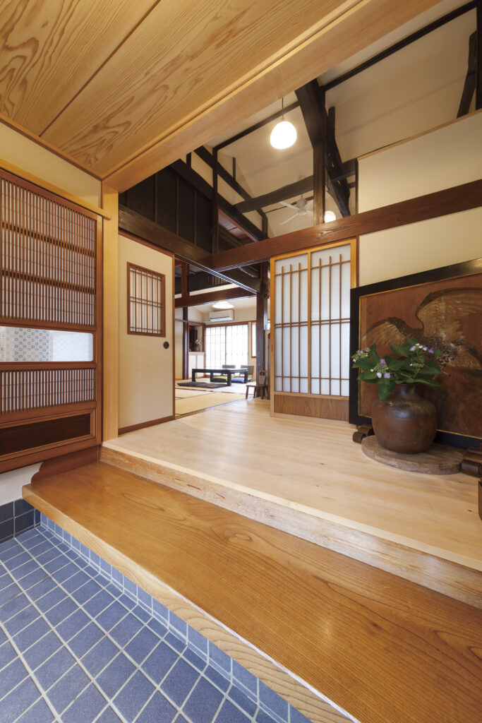 古民家リノベ 玄関をおもてなし空間に山崎建築静岡県の新築・注文住宅・リフォーム・古民家リノベーション・ママンの家。