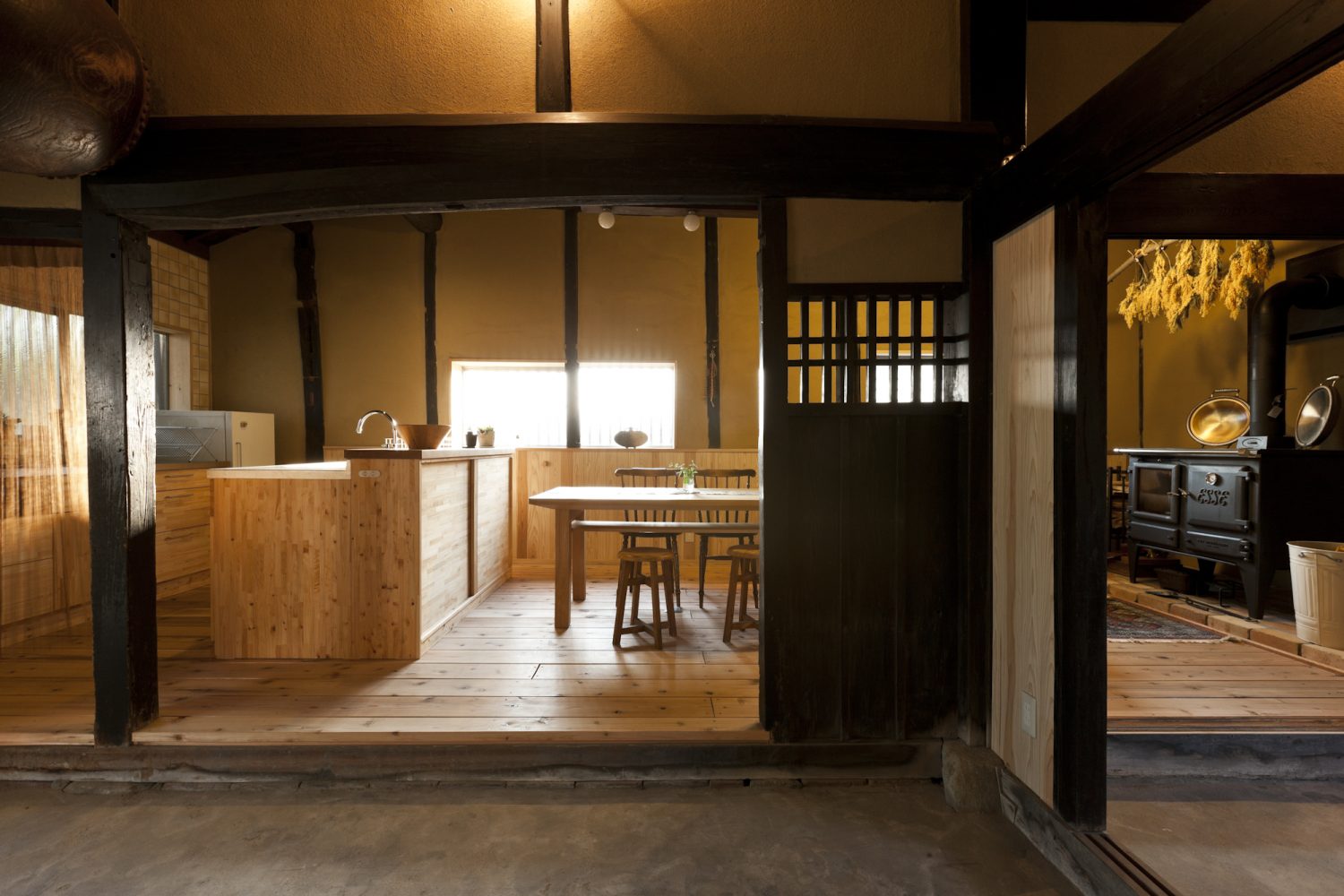 玄関からDKまで続く通り土間が魅力の古民家リノベーションリノベーション施工事例SCHOOL BUS。