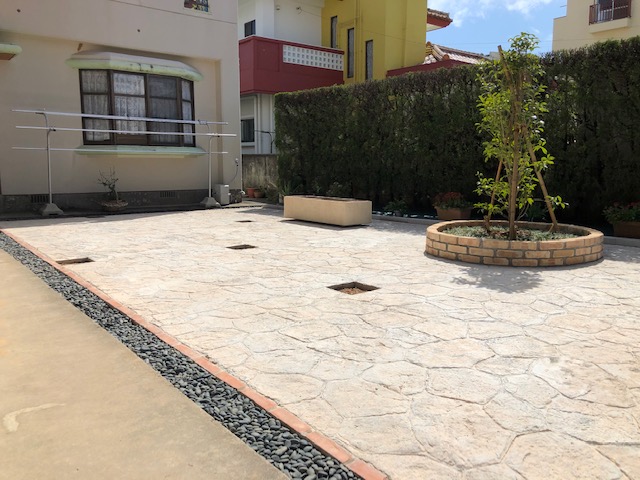 庭をコンクリートで固めるのなら、スタンプコンクリートで低費用でおしゃれなデザインが可能 - 株式会社メイク・プラスター三重県鈴鹿のスタンプ コンクリート職人。