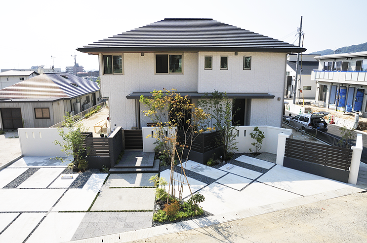 金沢市の新築外構で注目のおしゃれな土間コンクリートアプローチ外構工事Column石川県金沢市の外構なら株式会社E.S.I。