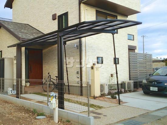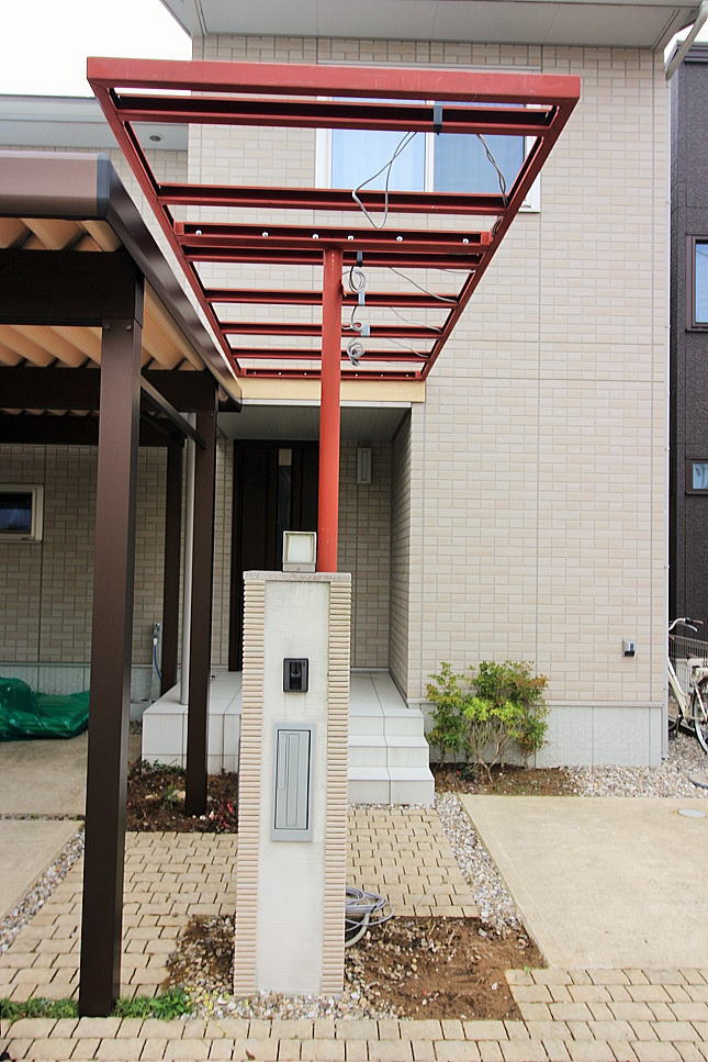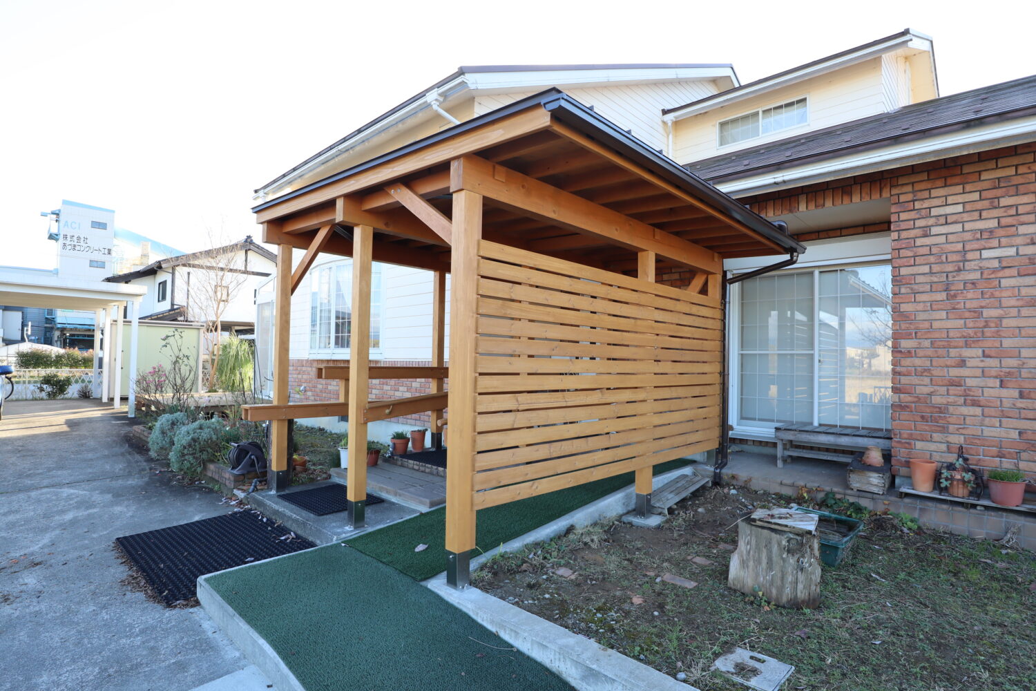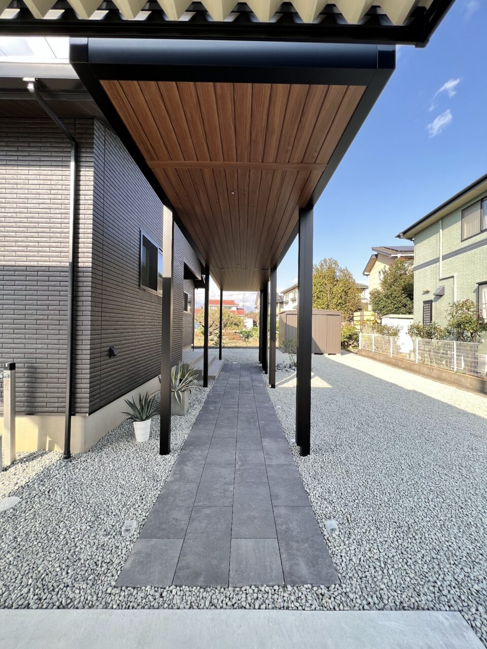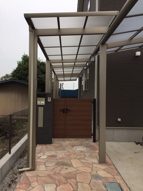 山梨市・雨に濡れずに家に入れるアプローチ屋根Play Garden 株式会社プレイガーデン。