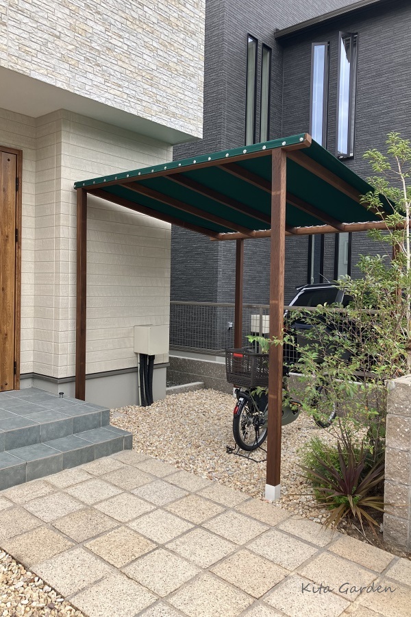 駐車場から玄関まで濡れないアプローチ。ナチュラル外構完工です。夢庭エクステリア│埼玉県さいたま市│エクステリア・外構工事。