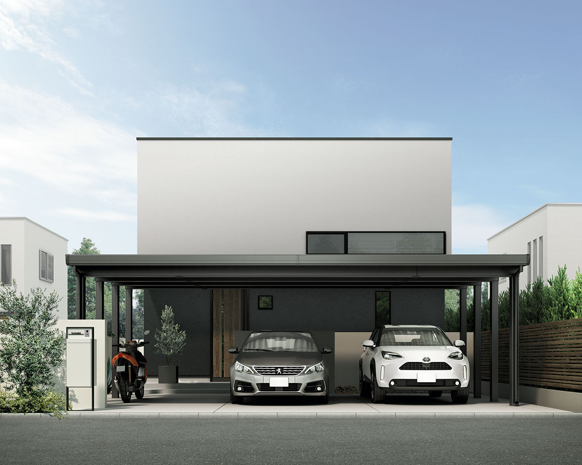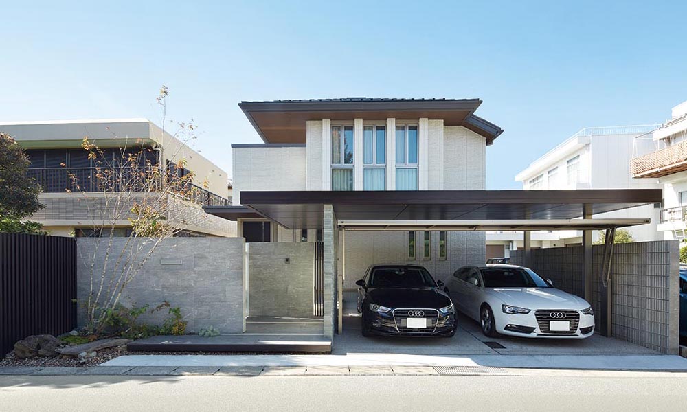 カーポートで玄関前までつなぐ!車からお家まで傘いらず、ホテルライクな暮らしを実現するテクニック庭ファン。