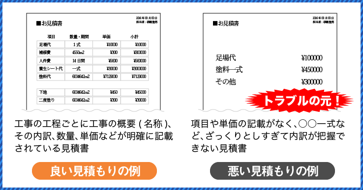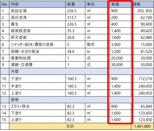 外壁塗装の見積もり比較 内訳あり。