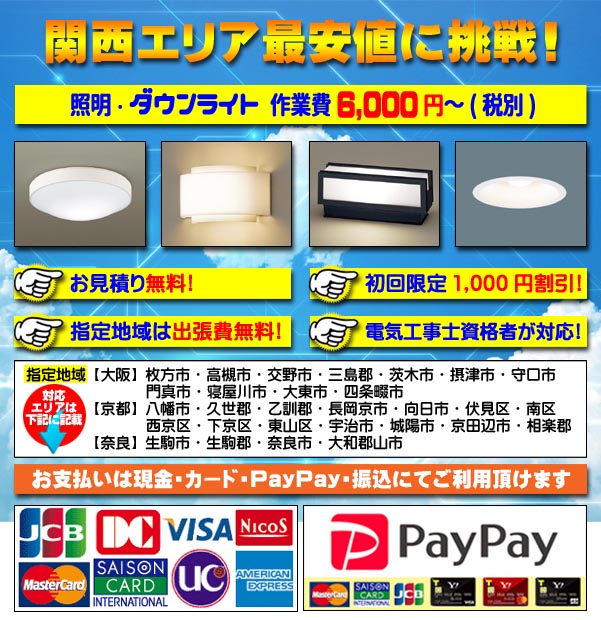 照明の交換・取り付け・工事は大阪・京都・奈良地域対応の弊社へ。