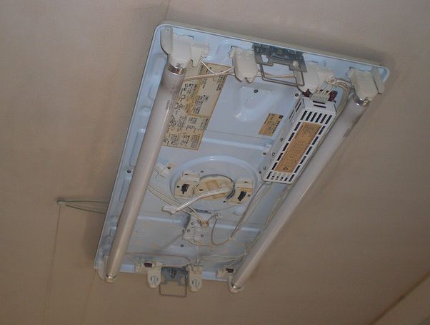 古い直結式蛍光灯からLED照明へ交換引掛シーリング取付電気工事士の資格有Replacing old direct fluorescentlamps with LED lighting。