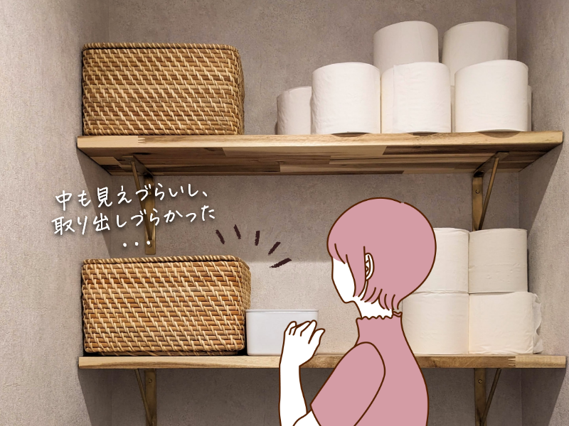 トイレの棚からナプキンが降ってきます 全部無印良品で解決!ビフォアアフターサンキュ。