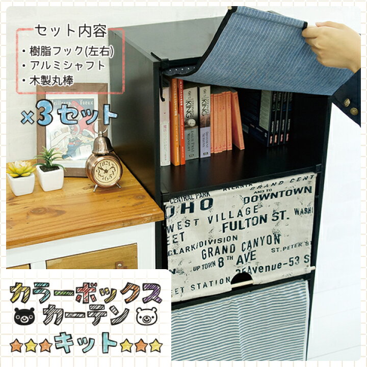 お気に入りの布で手作り カラーボックスカーテンキット3枚分セットカラーボックス 目隠し 3段 扉 カーテン ふた カバー タペストリー 棒扉付き 隠す DIY キット 収納 ラック おしゃれ カラーボックス用扉 後付けSEMI-STYLE。