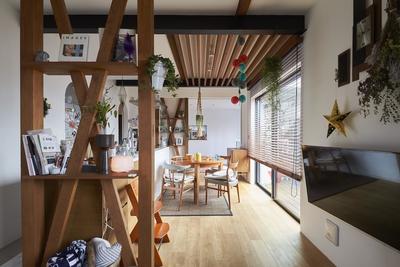 筋交いがインテリアのアクセントに 大好きなアジアンテイストの住まい- リビングダイニング事例SUVACO スバコ。