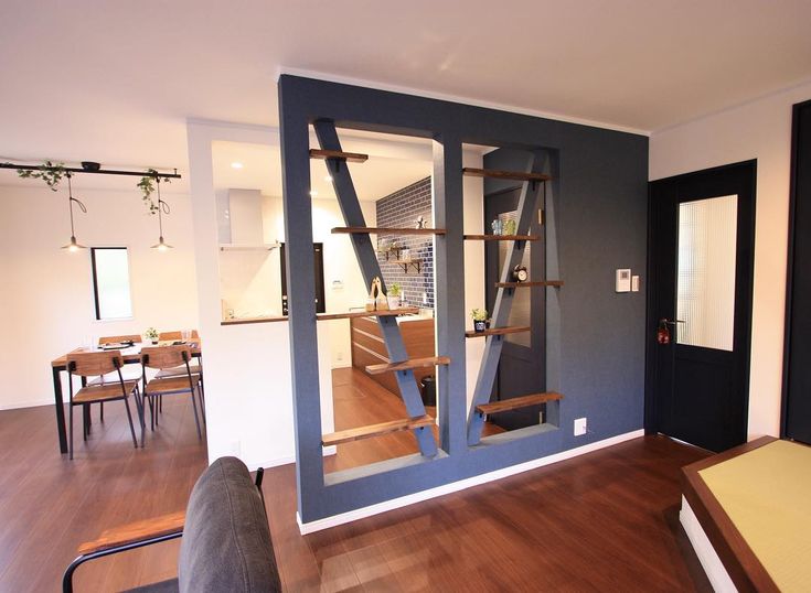匠工房*インテリア on Instagram: “筋交いに棚を取り付け、おしゃれに飾れるスペースに *´꒳`*.壁を解体しあえて見せることで、ゆるく仕切りながらも 開放感を感じられる空間になりました ^o^.匠工房滋賀リフォーム新築リノベーションインテリア筋交い。
